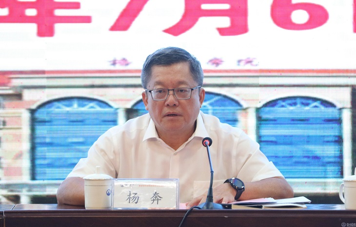 校长杨奔以《实干细致 以评促强 推动学校高质量发展再上新台阶》为题作部署讲话。针对本次本科教育教学审核评估工作,杨奔校长提出了四点要求:充分认识审核评估的重要意义;精准把握审核评估的核心要素,坚持协同联动统筹安排;压实责任,高效推进审核评估的组织落实;解放思想,创新工作思路。他指出,各单位各部门要真实、客观、准确地提供各项材料与信息,在评估过程中以实事求是的态度全面考察、独立判断、客观评价,找准学校立德树人工作中的主要问题、影响学校改革、建设、发展以及人才培养质量提升的关键问题,并提出合理建议,找准真对策,更好地为学校高质量完成新一轮审核评估工作服务。他要求,学校要积极构建“自觉、自省、自律、自查、自纠”的大学质量文化,达到以评促建、以评促改、以评促管、以评促强的效果。各单位各部门应形成强大工作合力,牢固树立全局意识、合作意识,务必服从安排、加强沟通、密切配合、共同推进,高水平完成审核评估。